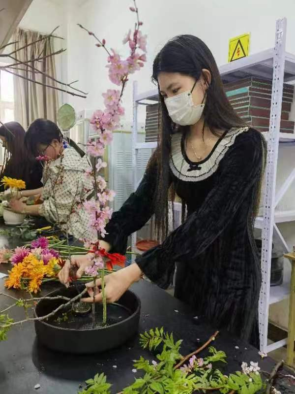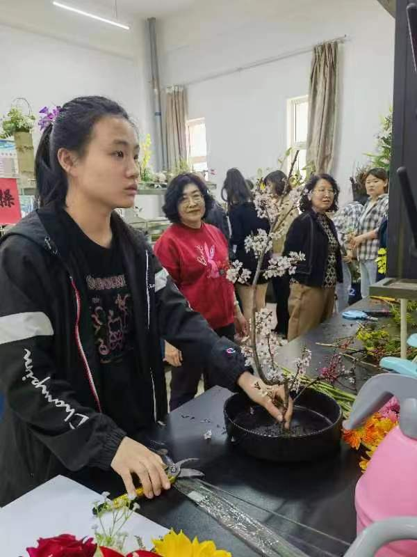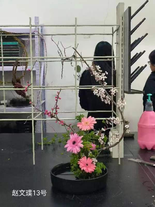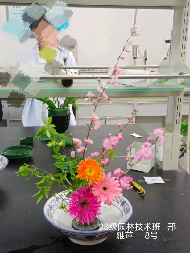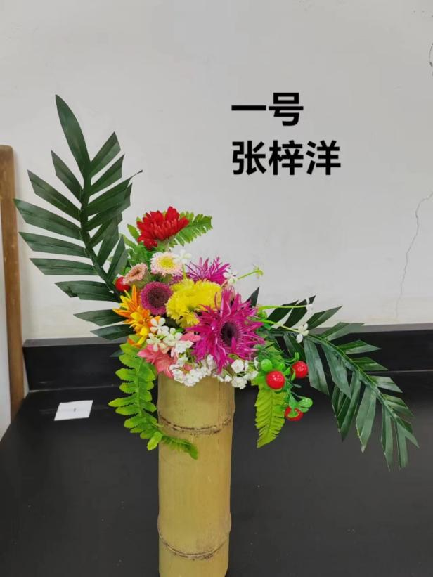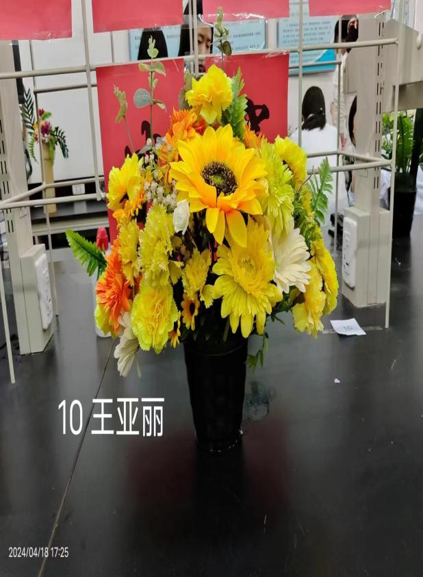 通过一个小时的设计与制作,选手们都顺利地完成了自己的作品,作品风格多样,色彩运用恰当,展现了园林专业学生的花艺技能。