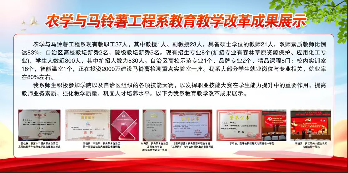 按照《乌职院发﹝2023﹞41号best365中国官方网站2023年职业教育活动周暨职业教育宣传月实施方案》要求,农学与马铃薯工程系将近两年以来师生参加技能大赛取得的成果进行展示。