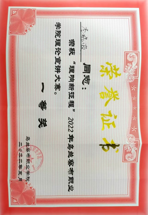 2022年5月和7月,李晓波老师分别获得理响新征程和双带头人擂台比武比赛院级一等奖。